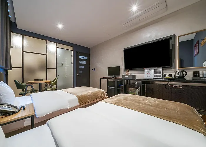 Triple 8 Hotel Seoel met 12 kamers ligt in de nabijheid van Waterland van Anyang, gelegen op 4 km verderop. Gasten kunnen daar van wifi in de hele accommodatie genieten.